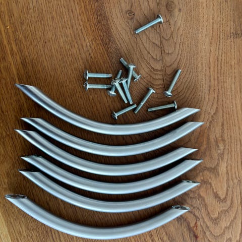 Sælges 18 greb i alu mat med tilhørende skruer