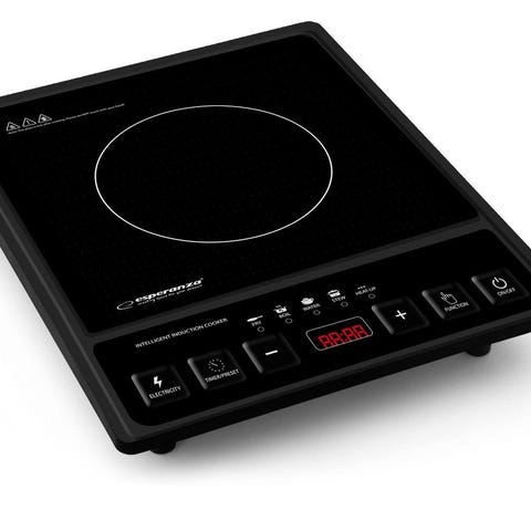 Induktionskogeplade med sort glasoverflade. Designet til effektiv og præcis madlavning med induktionsteknologi.