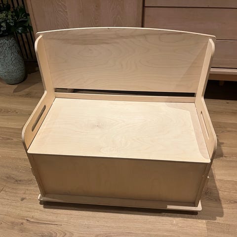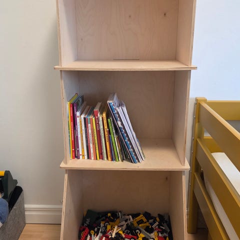 Et utrolig alsidigt møbel der er brugt til både daybed og lego-bord fra danske PixiForm. Standen er generelt rigtig flot, om end der er tegnet under bordpladen (se sidste billede) og en rød klat på siden (ikke forsøgt fjernet).
