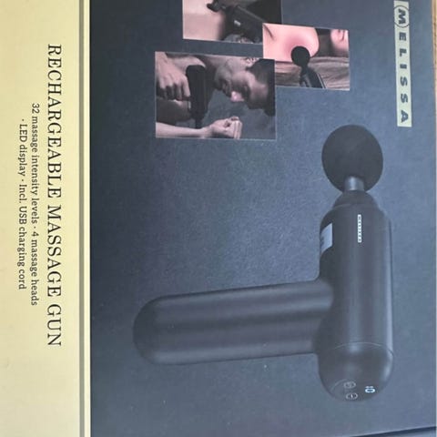 Sharper Image Powerboost Pro massagepistol med flere udskiftelige hoveder til forskellige massageformål. Enheden har funktioner til både varme og kulde, og leveres med et beskyttende etui. Velegnet til muskelafslapning og restitution.