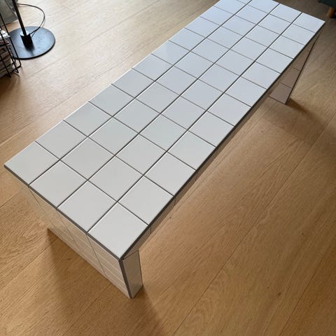 Hvid Cube fra Ikon København, ingen skader på fliser. Laver af træ og keramiske fliser. Nypris 8300kr vejer 20 kg