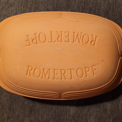 Römertopf – str 116 – 37x23 cm og 17 cm høj – har brugsspor men stadig anvendelig – stegeso