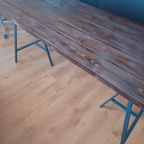 DIY plankebord med foldebar ekstension. Idealt til en lille lejlighed eller et værelse hvor fleksibiliteten er vigtigst. Det byggede jeg for nogle år siden da vi båede i en lille lejlighed i København og så var det vores spisebord. I de sidste 4 år har det været kontornord, men nu er det tid til at bæive beugt af sin næste ejer :)