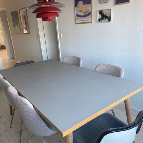 Overflade black linoleum og ben i massiv olieret valnød. nypris 13.999 kr.
