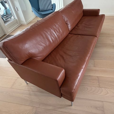 Sofagruppe - Opus Stouby - Nubuk og træ - 1 sofa, 2 lænestole