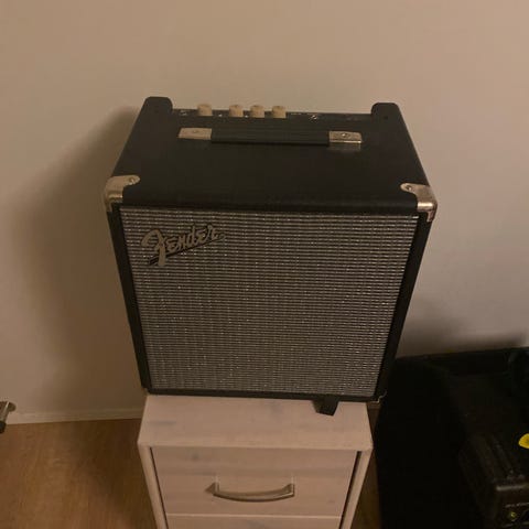 Yamaha bass forstærker i sort farve. Udstyret med volumen- og basjusteringer samt flere input- og output-porte. Designet til brug med el-basinstrumenter. Super lækker transistor forstærker med ren lyd. Jeg her brugt den over en JBL 15”