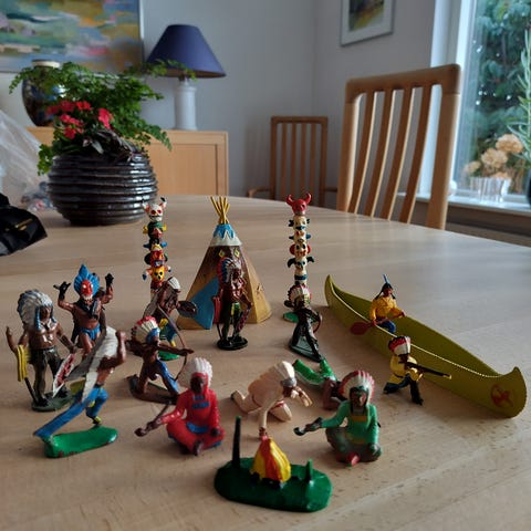 Indianer telt med 3 figurer og en kano