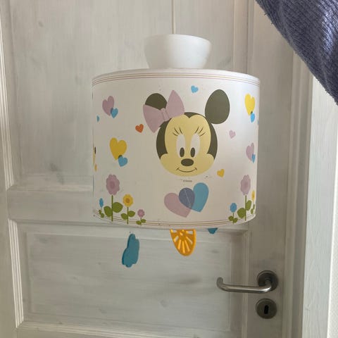 Sød lampe med Minnie Mouse, har en lille sort streg på det hvide, se billede.