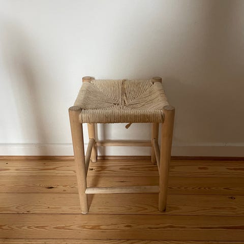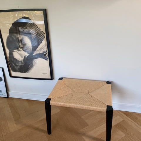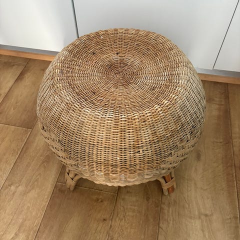 Virkelig fin skammel i flet, og med metal ben. Fremstår i rigtig flot stand - dog mangler der én dut under det ene ben. Har ingen betydning :)