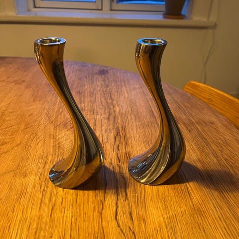 Tre Cobra lysestager fra Georg Jensen til salg. De kan afhentes i Rungsted.