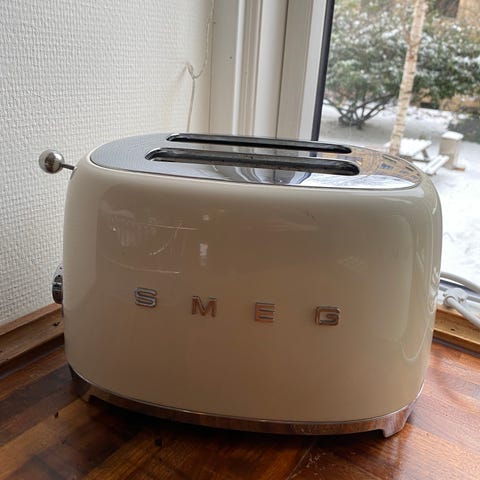 Smeg 4 Slice Brødrister i cremefarve med to brødristerpladser. Designet til at riste brød jævnt og effektivt. Leveres med tilhørende manual og original emballage.
