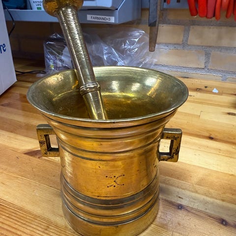 Messing apoteker mortere med støder - 5 stk.
