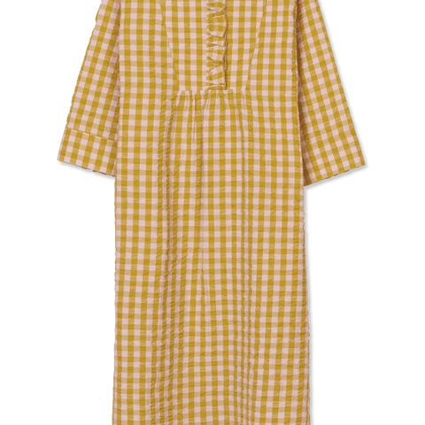Har aldrig været brugt. Str M/L. Lyserød med gule, blå og hvide blomster.