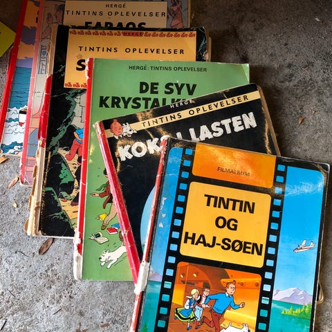 Tintins Oplevelser bind 1-21. Alle bind er nærmest som nye. Bind 16 er en ældre udgave end de øvrige, men er også i meget fin stand.