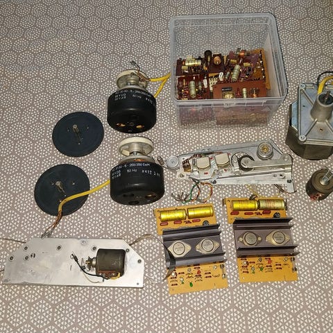 Revox A77 MK4 båndoptager med to spoler, sort og grå farve. Enheden har kontrolpanel med knapper til afspilning, optagelse og justering af lydniveau. Har været brugt til lydproduktion og indspilning de seneste år.