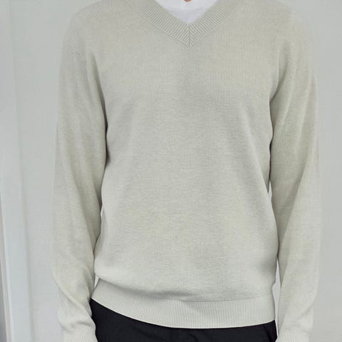 Lækker org vamset striktrøje i grå, af bomuld/akryl/polyester/uld. Perfekt stand, brugt én gang