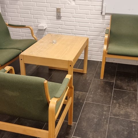 Sofagruppe i massivt moseeg – Grumløse Møbelsnedker (ombetrukket)