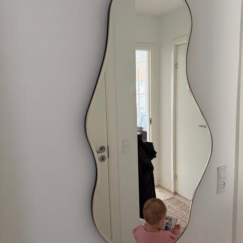 B: 63.5 x H: 110 x D: 1.5 cm, kan også hænge vandret, messing kant