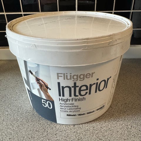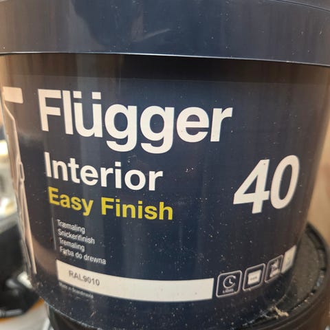 Malingen er Wegner sort og beregnet til indendørs træværk. Nypris 799 kr. Vi har brugt den på synlige spær i et sommerhus, men har fået købt for meget.