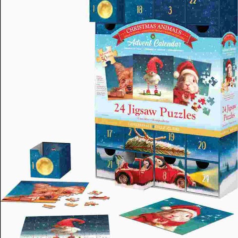 24 små puslespil a' 54 brikker. Det er kun de første 3 æsker, der har været åbnet.