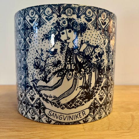 2 stk urtepotteskjuler med blå motiv. Diameter 14.6 og 13 cm høj. Sælges for 400 kr stk og begge for 700 kr.