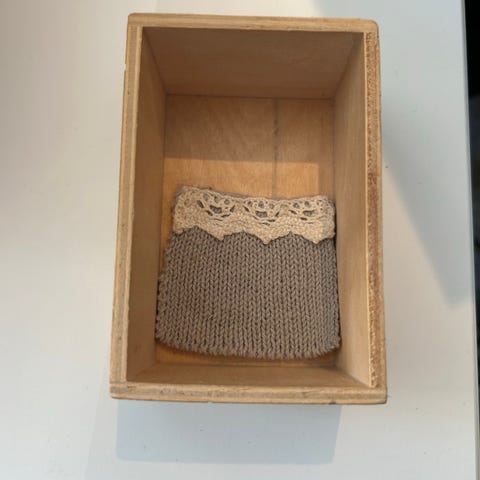 Maileg prinsesse mus legetøjssæt med en dekorativ kasse formet som et slot. Sættet indeholder flere små tekstilprodukter med forskellige mønstre og farver, designet til børn.