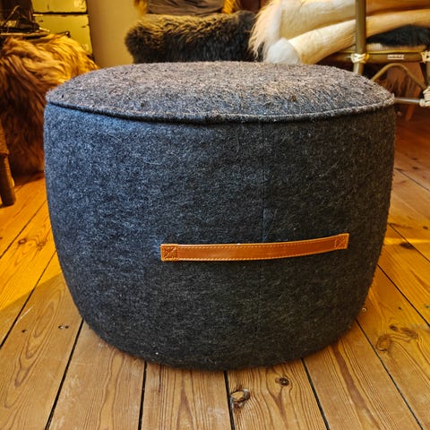 Rund autentisk skind puf