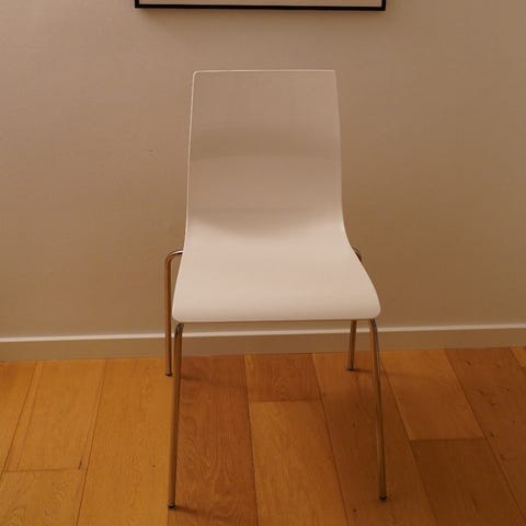 6 spisebordsstole med blåt betræk. Brugte, mærke ukendt men købt i Ilva.