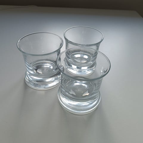 Holmegaard glas i klart glas. Bemærk en mindre skade på kanten af glasset, som ses på billederne.