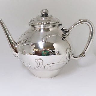 Te- og kaffekande fra A. Dragsted København 1920. Begge dele tretårnet sølv.