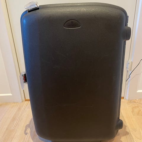 Stor klassisk Samsonite hardcase kuffert, med fire hjul.
