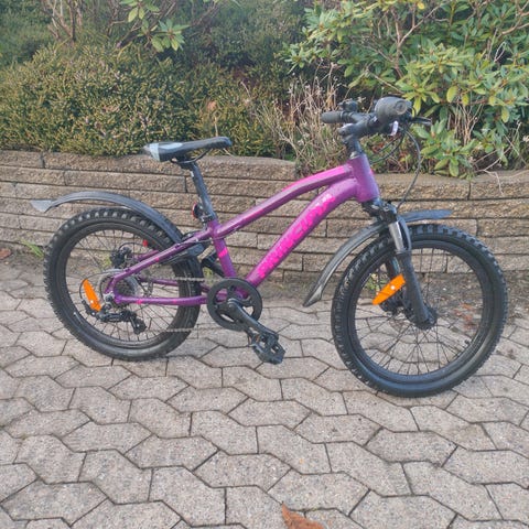 Principia børnecykel med 20 tommer hjul i blå farve. Cyklen er designet til børn og har en ramme og komponenter tilpasset denne størrelse.