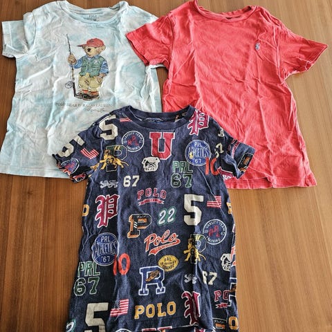 Sælger 2 T-shirts og 1 Polo fra Ralph Lauren, brugt af vores søn som 5–6 årig (ca. str. 110–116 cm).