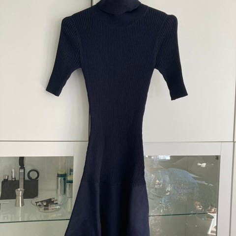 Michael Kors Hverdagskjole i størrelse M, sort farve og lavet af polyester. Kjolen har et mønster med Michael Kors-logoer og er designet til kvinder.