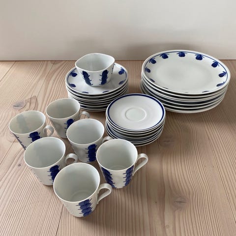 Lyngby Porcelæn Blåbær. 13 stk. dybe tallerkener 20 cm. Pris er pr. stk. Derudover medgår 2 tallerkener uden betaling med skår, hvis det ønskes. Se mine øvrige annoncer med Lyngby Porcelæn. Skal afhentes i Lyngby.