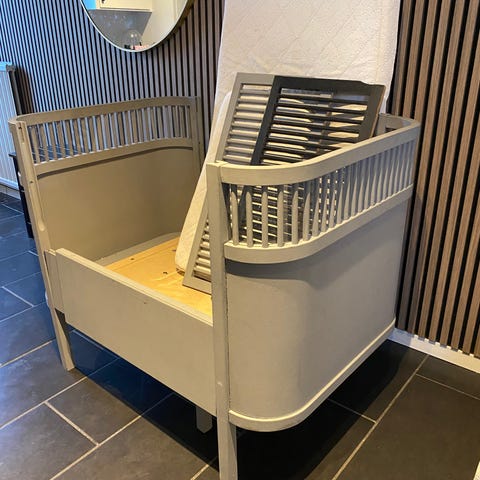Gammel udtræksseng i træ. Kan bruges i mange år og vokse med barnet. Min søn bliver snart 10 år og nu er det tid til en ny seng. Madrassen er lidt slidt og jeg vil anbefale at man selv køber en ny, men I er velkomne til at få den samt den ekstra madras, som længden kan vokse med, med i købet.