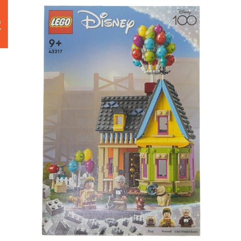 LEGO Disney Up Hus sæt med balloner. Indeholder et hus med flere rum og detaljer, farverig facade med gul, grøn og lilla, samt flere minifigurer og balloner. Egnet til børn fra 9 år.