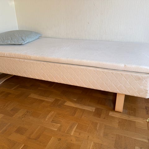 Boxmadres 90x200 med stålben og topmadres. 350 kr.