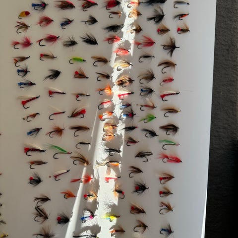 50 stk double og enkel krog fluer til havørred og lakse. Bund proff fluebinder og kvalitet materiel. Alle er ubrugt og nyt. Knæk og bræk. Mvh