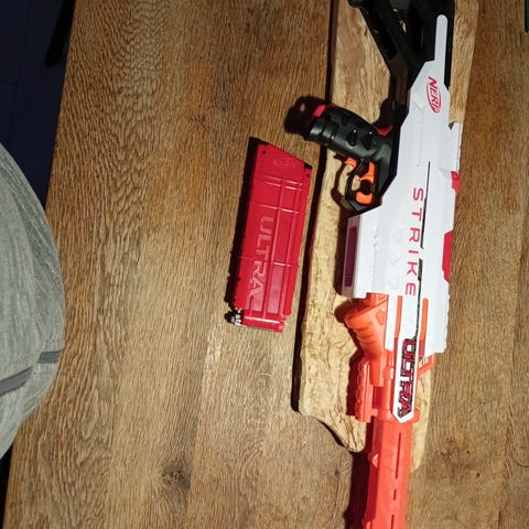 Nerf Zombie Strike Ripchain legetøjsgevær i grøn og orange.