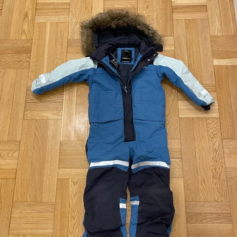 Didriksons børne vinter flyverdragt i størrelse 130, designet til unisex brug. Flyverdragten er mørkeblå og reflekser. Den giver beskyttelse mod vejrforhold og komfort til barnet. Den er meget praktisk. Med lommer og snefang. Kan fint bruges til sne eller ski.