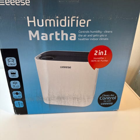 Eeese Luftaffugter med hvidt kabinet og elektrisk strømforsyning. Enheden er designet til at reducere luftfugtighed i indendørs rum op til 40 kvm. Sælger denne for mine gamle forældre. Fejl køb. Købt i november, knap brugt. Ny pris 1298kr