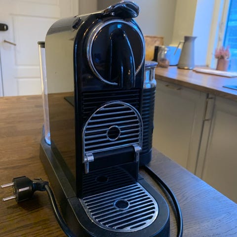 Nespresso CitiZ kaffemaskine i hvid farve. Kompakt design med integreret drypbakke og vandtank. Velegnet til brygning af espresso og andre kaffedrikke. Strømforsyning via kabel.