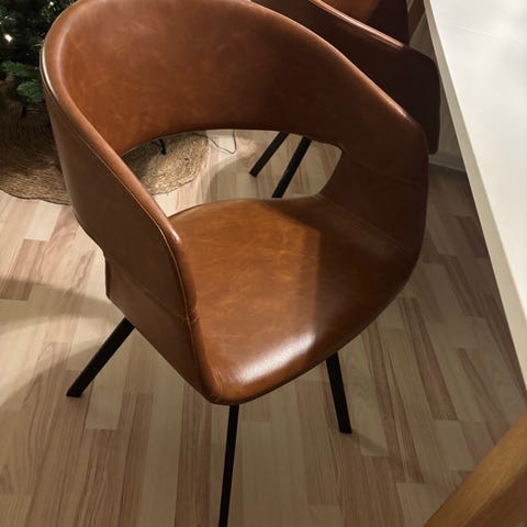 Spisebordsstole fra Ilva. Det er modellen Enigo Swivel Dining Chair som siden er udgået. Stolene er betrukket med mørkebrunt boucle og har krom fod. De er alle uden brugsspor og står som nye uden brugsspor. De kommer fra dyr- og røgfrit hjem. Og så har de et superlækkert retro look der minder meget om 60’erne og 70’erne.