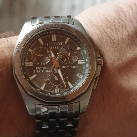 Lækkert herreur fra Tissot. Uret har kronograf, datovisning og er vandtæt til 20 BAR / 200M Uret har et quarts urværk samt safirglas. Herudover har uret en flot sort urskive og stållænke, samt et friskt batteri.