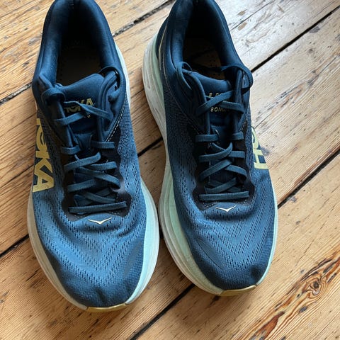 Hoka løb sko i størrelse 44, sort farve. Designet til løb med fokus på komfort og støtte.