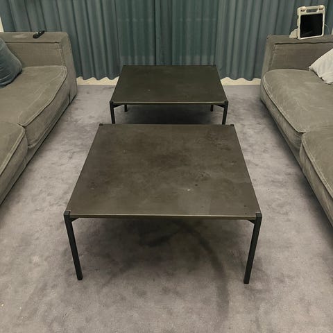 Flot sofabord fra Eberhart model Daphne kaffebord. Bordplade i antracitgrå beton, ben i sortbejset egetræ samlering i sort metal. Nypris kr. 5.995.