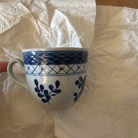 Rörstrand kaffekop og underkop med blå og gulddetaljer