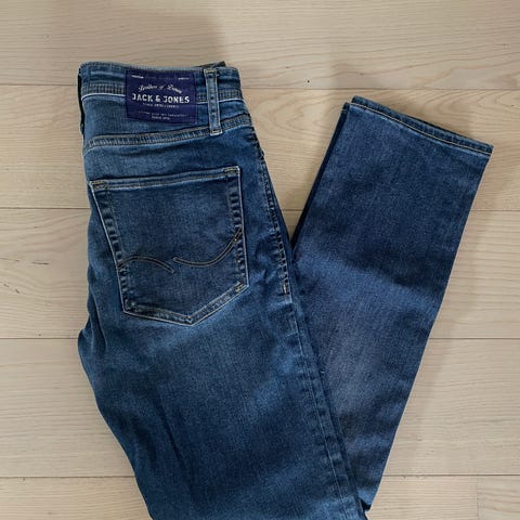 Str. 28/30. Slim fit. Bukserne er med stretch.