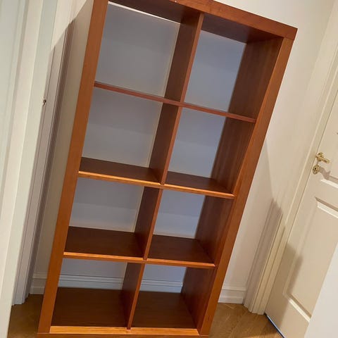Pæn kirsebærfarvet reol med fem hylder.